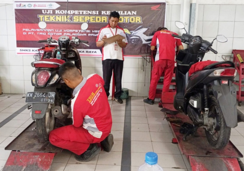 Kegiatan Uji Kompetensi Keahlian (UKK) siswa kelas XII jurusan Teknik Sepeda Motor SMKS Karsa Mulya Palangka Raya telah dilaksanakan pada tanggal 13–15 April 2026. Kegiatan ini berlangsung di dua mitra industri, yaitu PT. Trio Motor dan Cahaya Indah Motor, sebagai tempat pelaksanaan uji kompetensi bagi siswa.